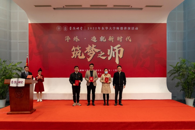 此外,服装与艺术设计学院党委的《华服托举航天梦,砥砺奋进东华人》、机关党委的《凤凰花开花落 就业路引路来》获二等奖;材料科学与工程学院党委的《衣锦天下铭壮志 丝路人生留芳踪》、机械工程学院党委的《以身立教,共铸科技强国梦》、理学院党委的《师道赓继,矢志不渝》获三等奖;马克思主义学院党委的《笃志于学筑师梦 春风化雨育新人》、计算机科学与技术学院党委的《少年初心永相随,一生践行强国梦》、人文学院党委的《丹心永驻,深耕教学》、信息科学与技术学院党委的《师德唯“一”》获优胜奖。机关党委的《凤凰花开花落 就业路引路来》获“最具台风奖”,环境科学与工程学院党委的《师者之光》获评“最佳原创作品奖”。环境学院党委、信息科学与技术学院党委、人文学院党委获“优秀组织奖”。本次讲演活动分初赛和决赛,共有来自二级单位党组织的17个讲演节目参加,10个节目入围决赛。